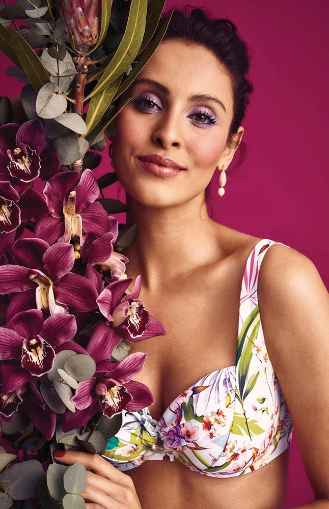 Der Bikini Style HERMINE zaubert mit schöner Raffung und verspieltem Zierring in der Mitte ein wundervolles Dekolletè.