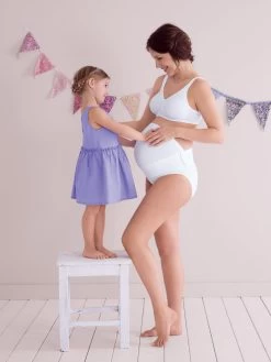 Der anatomisch geformte Unterbrustbund aus flauschigem Mikrofaserband verhindert Druck auf den Magen