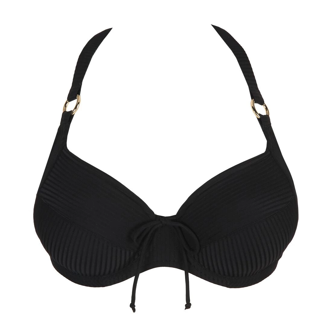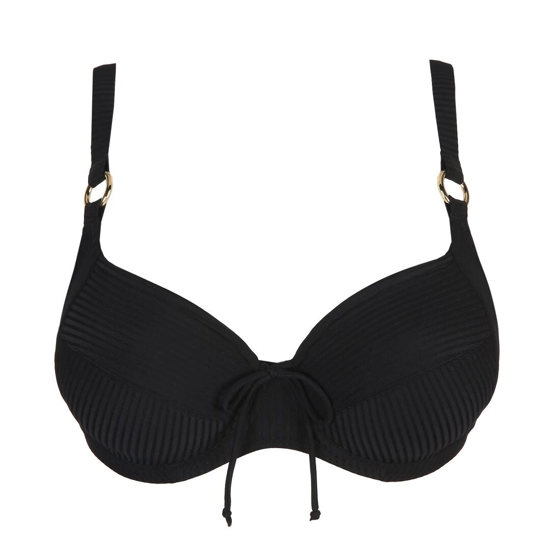 Stilvolles Bikini-Oberteil mit Vollschale aus einem feinen Strukturmaterial. Elegante Bademode in zeitlosem Schwarz: eine himmlische Verbindung.