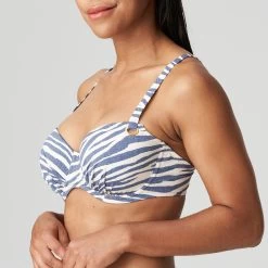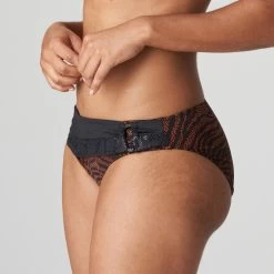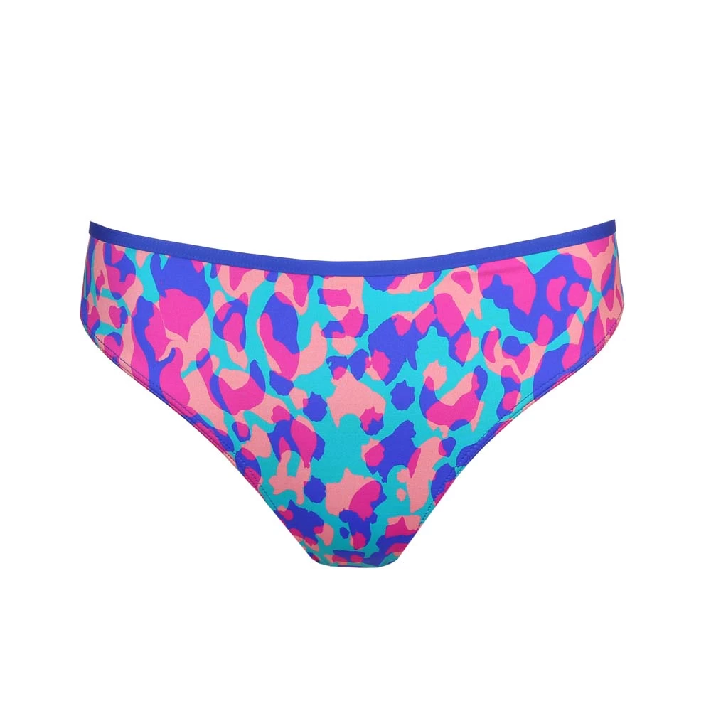 Bikini-Rioslip mit farbenfrohem Camouflage-Muster und Einfassung in einer Kontrastfarbe an der Taille. Electric Blue ist eine warme Mischung aus Fuchsia und frechen Pinktönen, die eine umwerfende Einheit bilden.