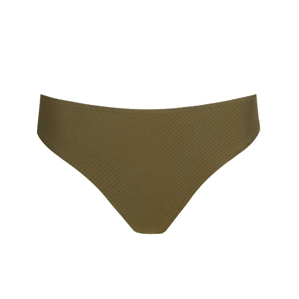 Bikinislip mit klassischem Rioschnitt, aus einem feinen Material mit Retro-Flair. Olive ist ein warmer khakifarbener Ton mit einem schicken goldenen Unterton. Ein schmeichelhaftes Essential mit einem trendigen Touch.