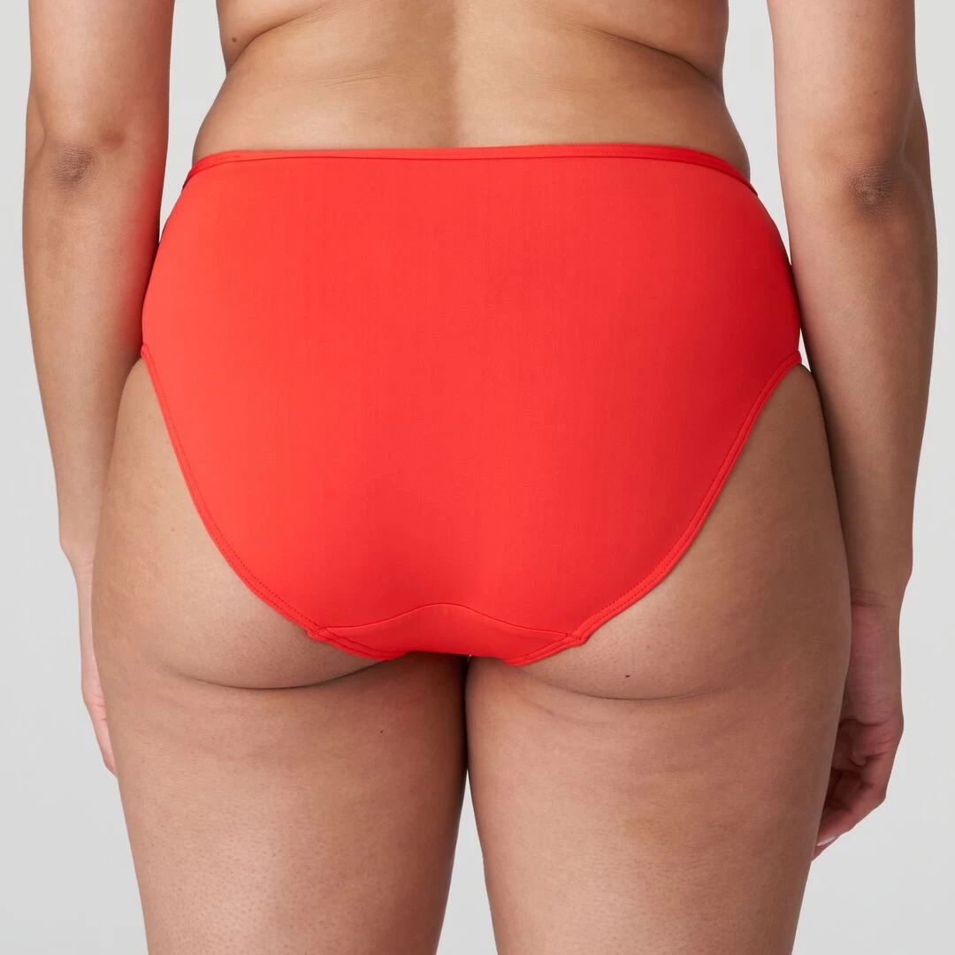 Bikinislip mit schickem Retro-Schnitt und schmeichelhaftem grafischem Look. Leuchtend rotes Pomme D’Amour, subtil kombiniert mit weiß: stilvoll sportlich!