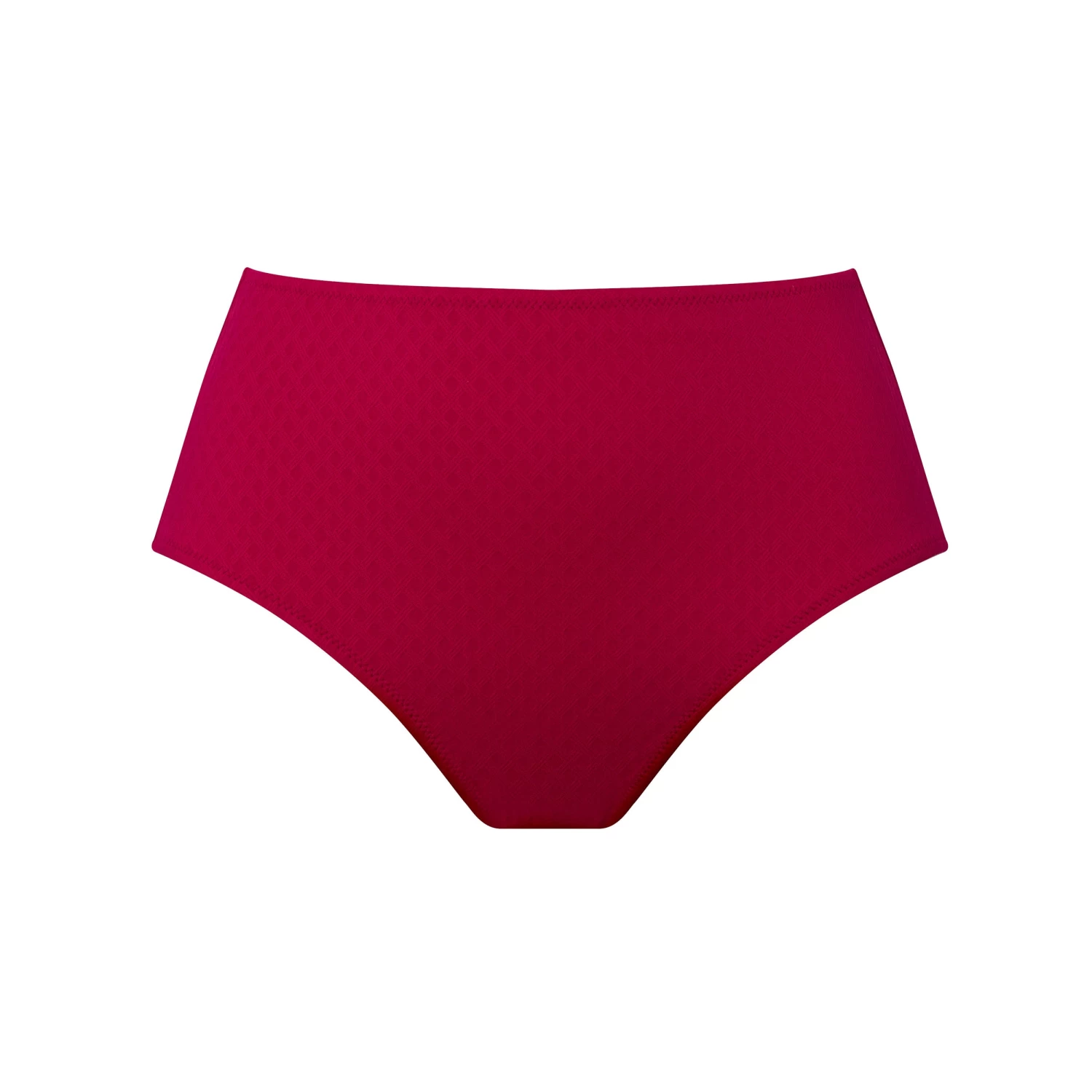 Bikini-Taillenslip mit Drapierung im Vorderteil aus Jacquard in Rautenoptik, gehalten durch eine Schmuckspange.