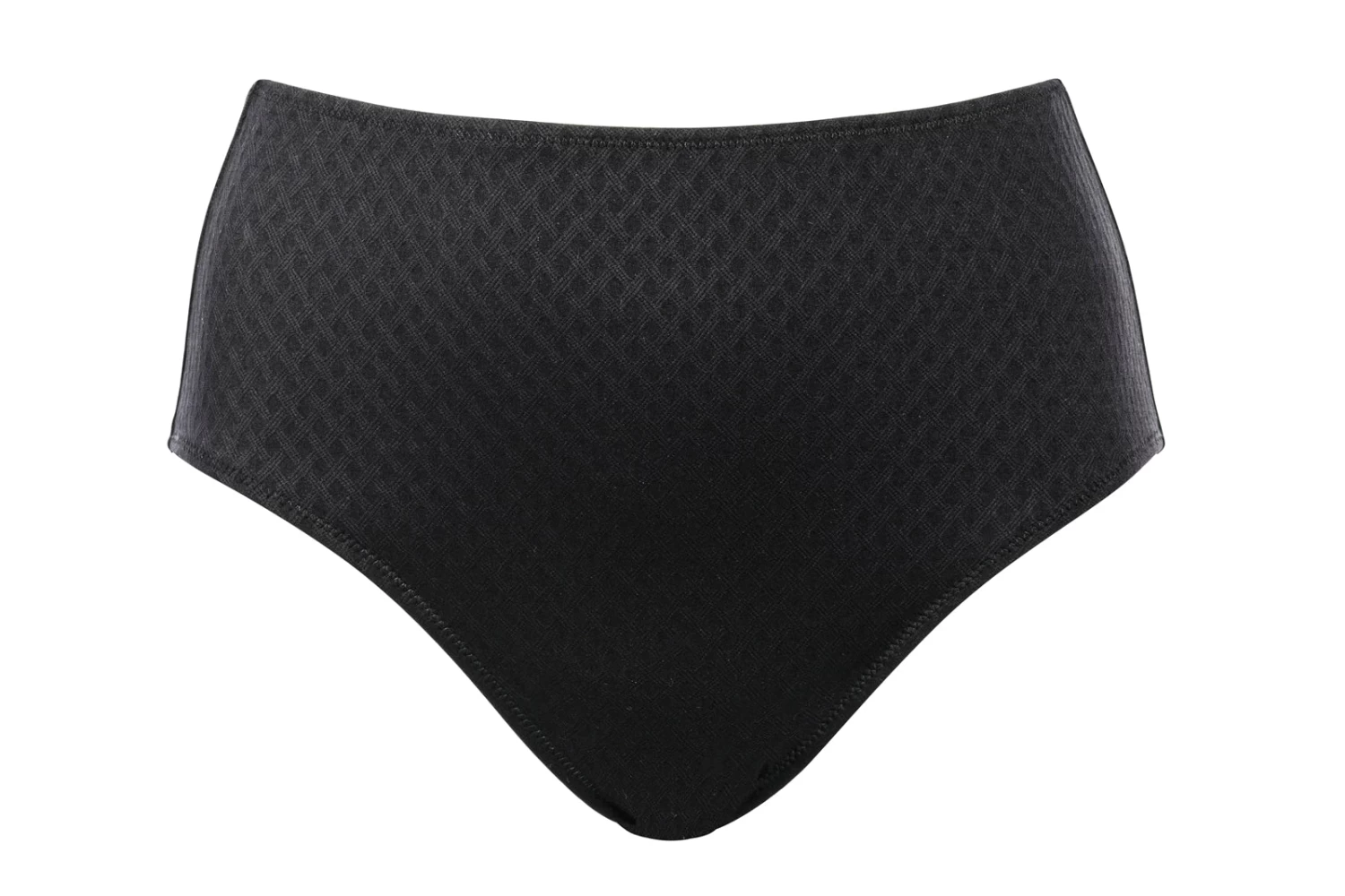 Bikini-Taillenslip mit Drapierung im Vorderteil aus Jacquard in Rautenoptik, gehalten durch eine Schmuckspange.
