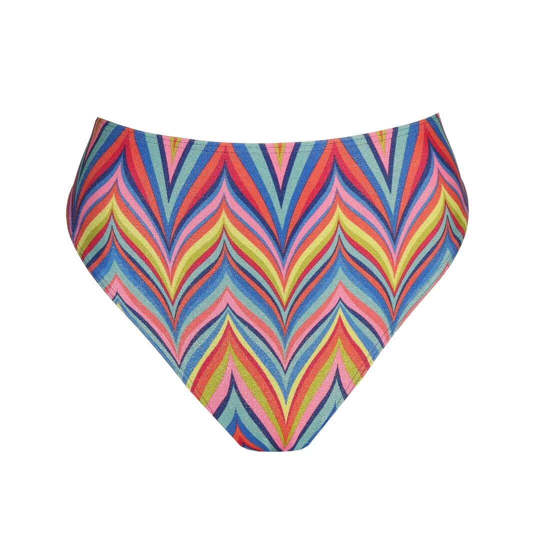 Hochaktueller Bikinislip aus einem Bademodenstoff mit Glitzereffekt und schmeichelhaften Missoni-Streifen. Rainbow Paradise ist ein sommerlicher mehrfarbiger Druck mit Glitzerakzenten.