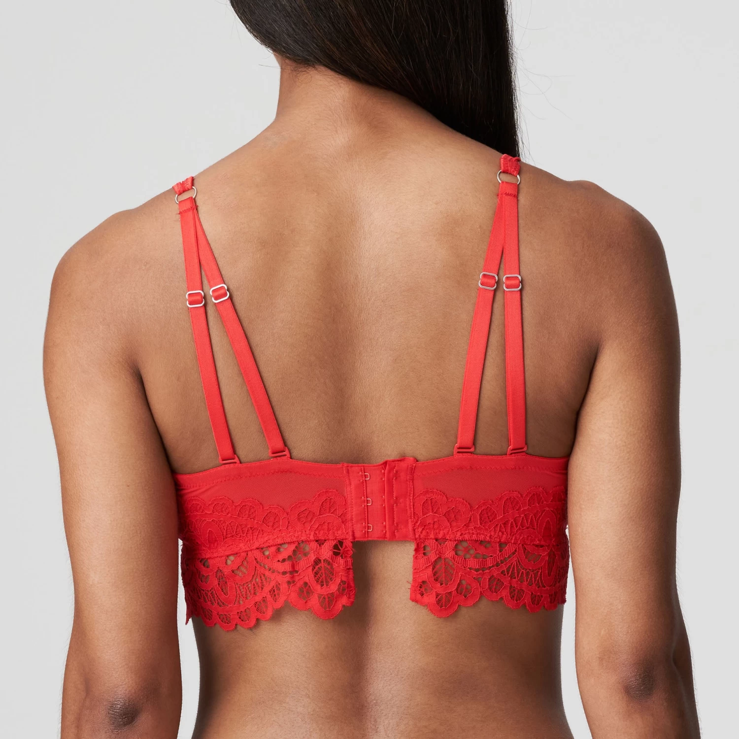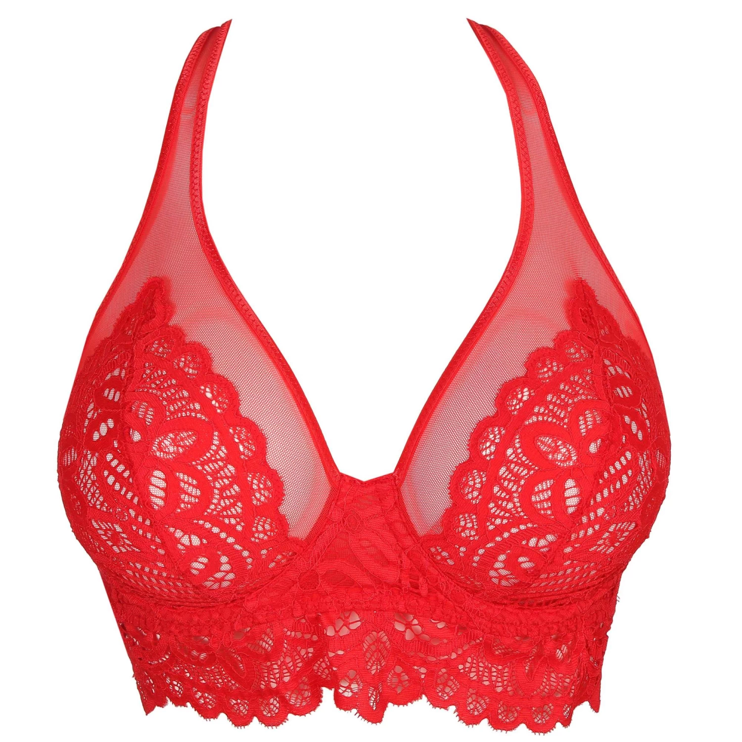 Longline-Triangel-BH mit besonders viel Spitze vorne, an den Seitenteilen und am Rücken. Die Triangel-Cups bedecken den Busen vollständig, die tief angesetzte Spitze sorgt für einen umwerfenden Effekt. Extrem verführerisch und unsichtbar unter Weiß: Pomme d’Amour ist ein feuerroter sommerlicher Farbton.