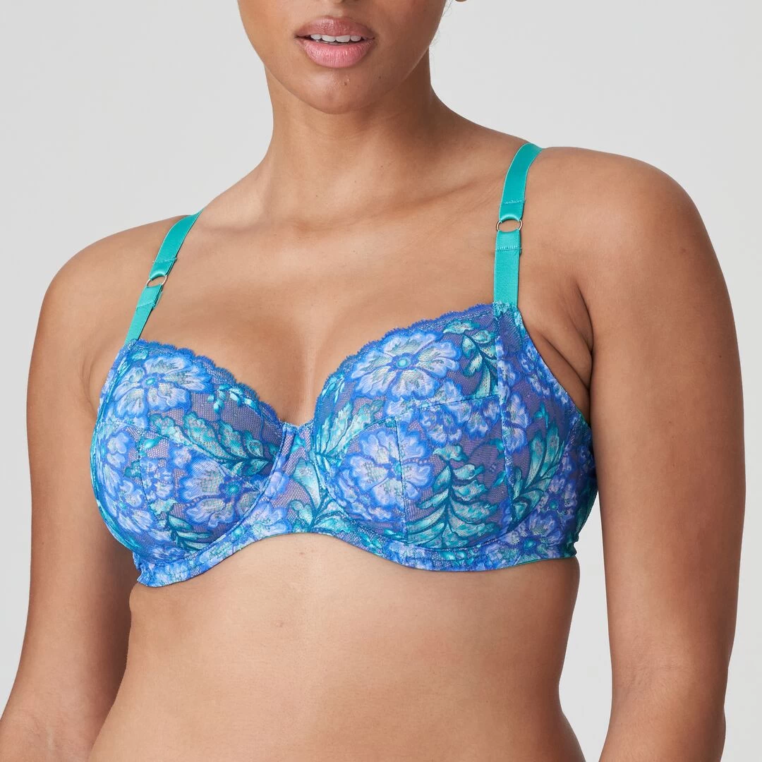 Ein modischer Vollschalen-BH, der Ihren Busen bequem und luftig verpackt? Dieser BH bedeckt Ihre Brüste vollständig mit farbiger, recycelter Spitze mit Blumenmotiv. Stilvoll, mit optimalem Halt für größere Cup-Größen. Mermaid Blue ist die Farbe des Atlantischen Ozeans an einem tropischen Tag. Sommerlich mit angesagtem Retro-Flair!