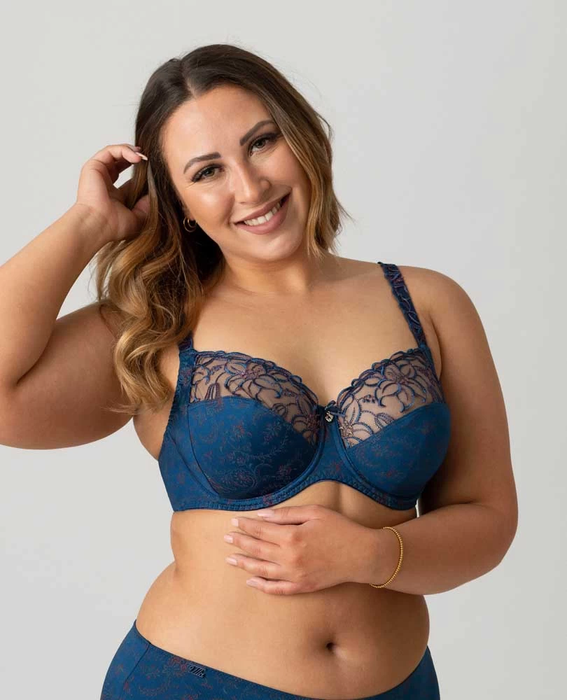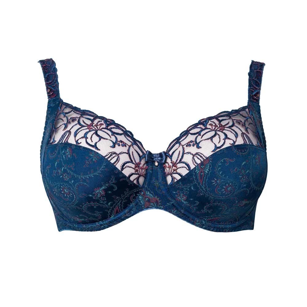 Luxuriöser BH aus feinem Paisleyprint, die traumhafte Stickerei aus Österreich sorgt für optische Leichtigkeit und Verspieltheit. Die BH-Träger sind mit Stickerei geschmückt.