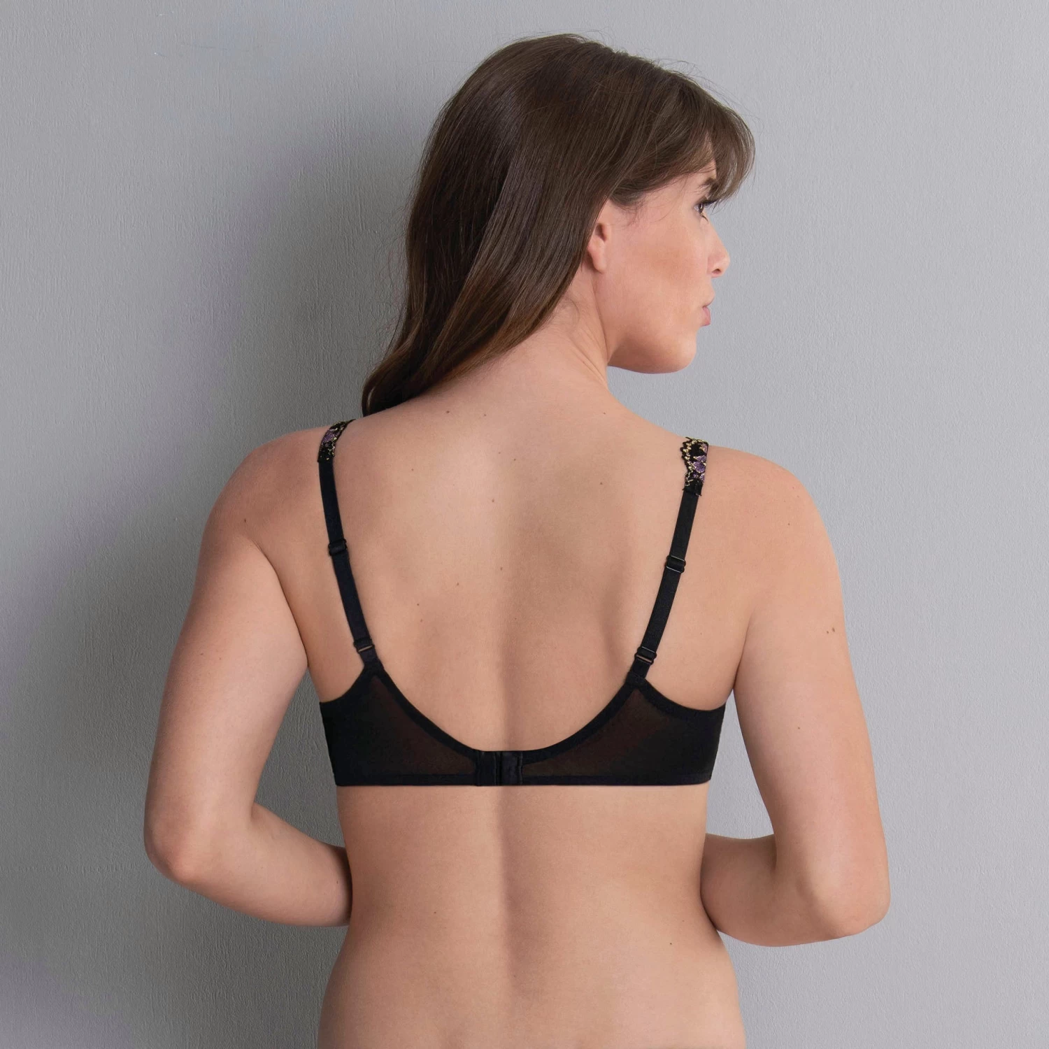 Vive la femme: von seiner verführerischen Seite zeigt sich der Triangel-BH ohne Bügel Colette mit besonders tief ausgeschnittenem Dekolleté. Der Soft-BH mit atmungsaktiven Spacercups greift die atemberaubende, dreifarbige Blüten-Spitze in Form von einer seitlichen Sichel am Cup und an den Trägern auf.