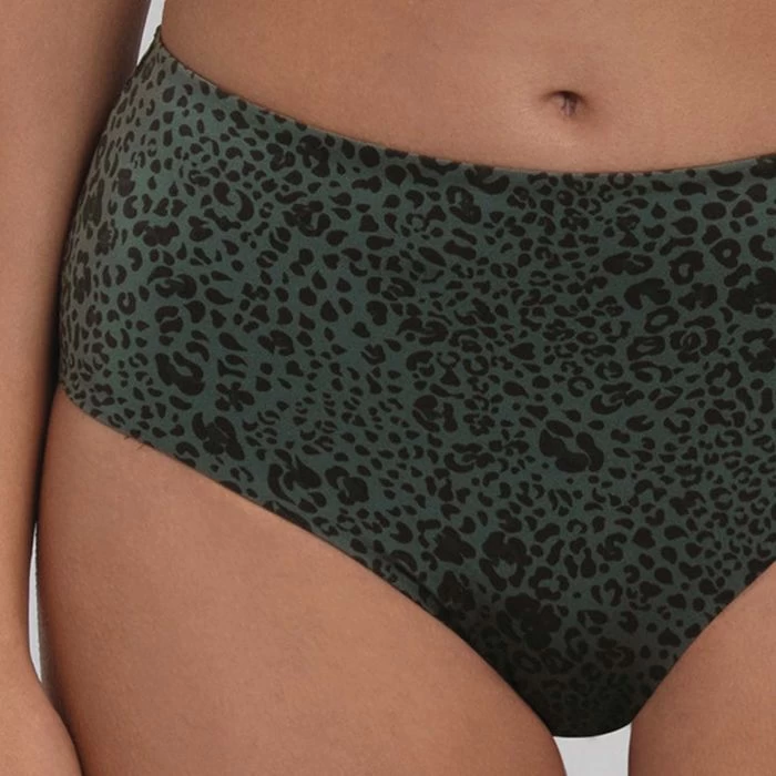 Der klassische Taillenslip+ passt zum Leo-Print der Serie mit dem Slogan „alles was Spaß macht ist erlaubt“. Der Taillenslip+ ist dehnbar und enthält vorne eine Tüllschicht, elastische Bänder an Taille und Beinen und ein weiche Ware für mehr Komfort.