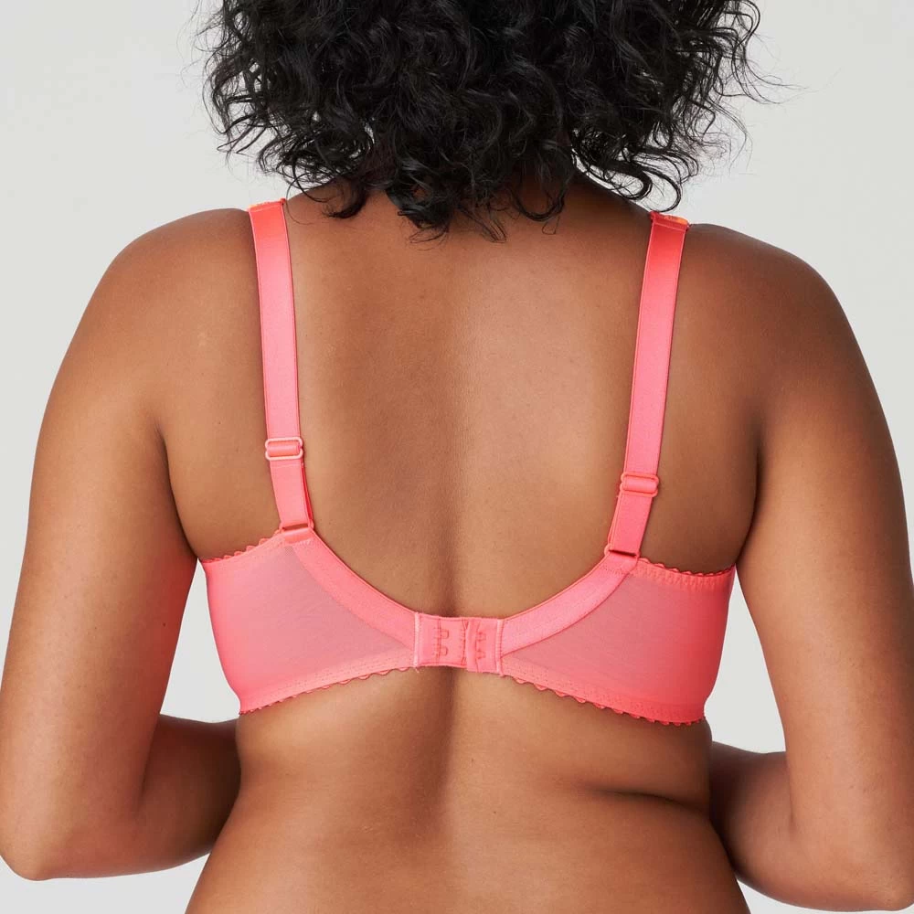 Verführerischer und bequemer Vollschalen-BH mit farbenfroher Allover-Stickerei, die in die Träger übergeht. Eine kontrastierende Paspel rundet den Look ab. Tropicana bringt mit einer schwülen Mischung aus Orange, Limettengrün und Pink sofortige Sommerstimmung.