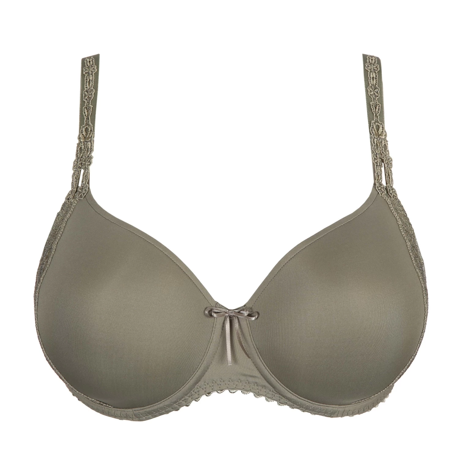 BH mit vorgeformten gepolsterten Cups und herzförmiger Linienführung. Über die Seiten der Cups ist eine Stickerei in schicker Spitzenoptik drapiert. Die Spaghettiträger sind mit eleganten Blumenornamenten verziert. Zeitlos und einfach zu kombinieren: Botanique ist ein schmeichelhafter Kakiton.