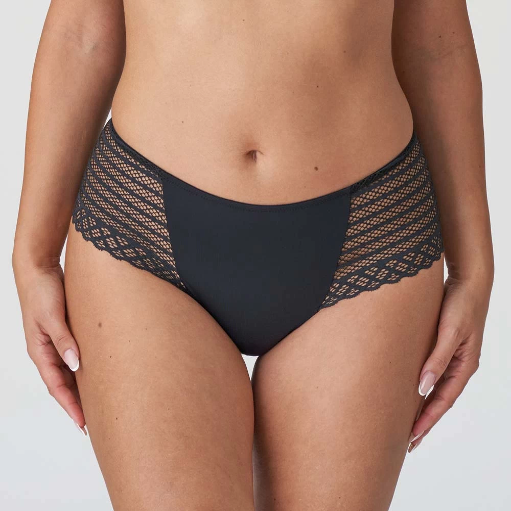 Umwerfende Hotpants aus einem glatten Stoff mit besonders viel geometrischer Spitze am Po. Charbon ist ebenso zeitlos wie schwarz, bildet aber einen etwas sanfteren Kontrast zu Ihrem Teint.