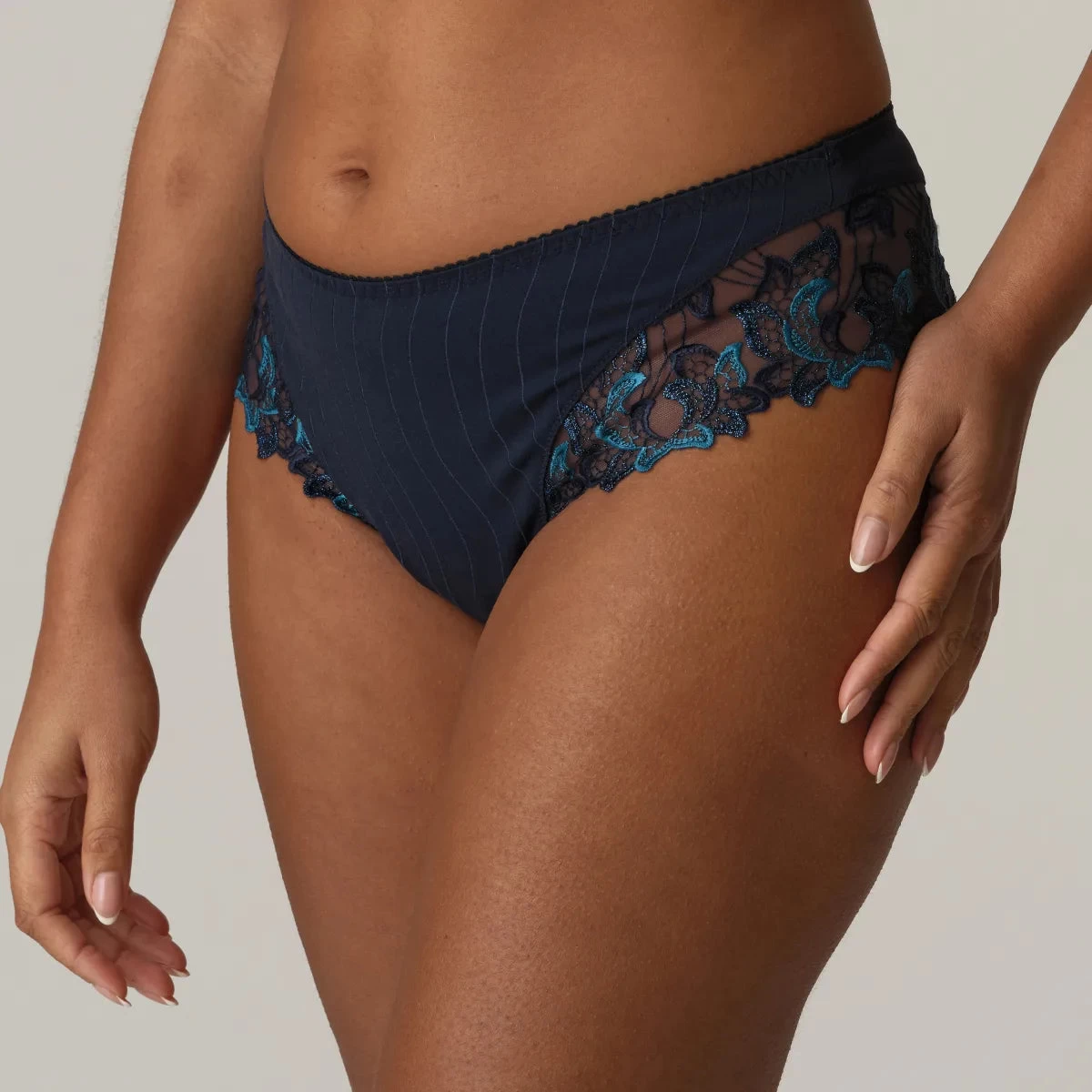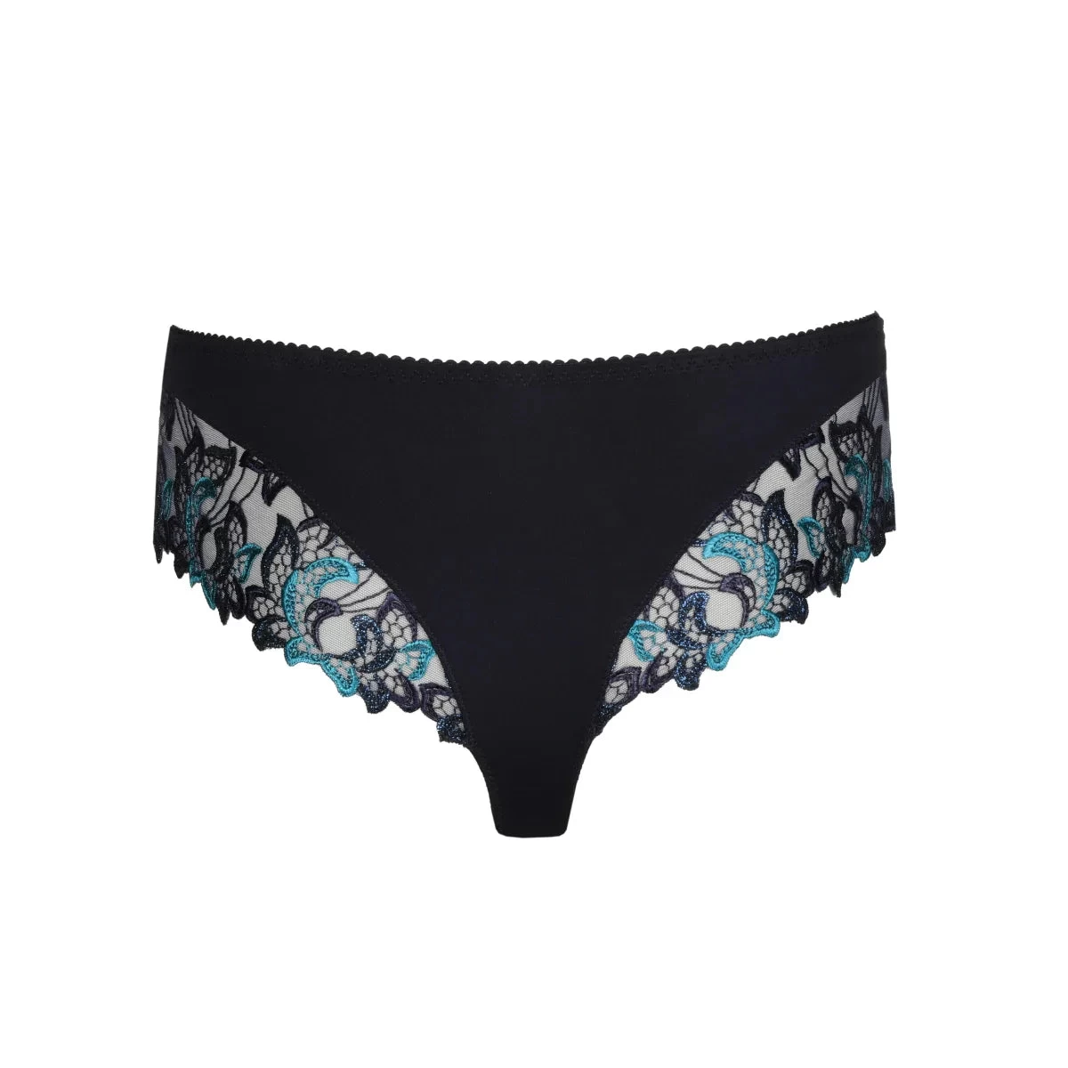 Schicker Luxusstring mit reichlich Stickerei an den Beinen. Ihre Lieblingsdessous in Scarlet, ein feuriger Rotton.