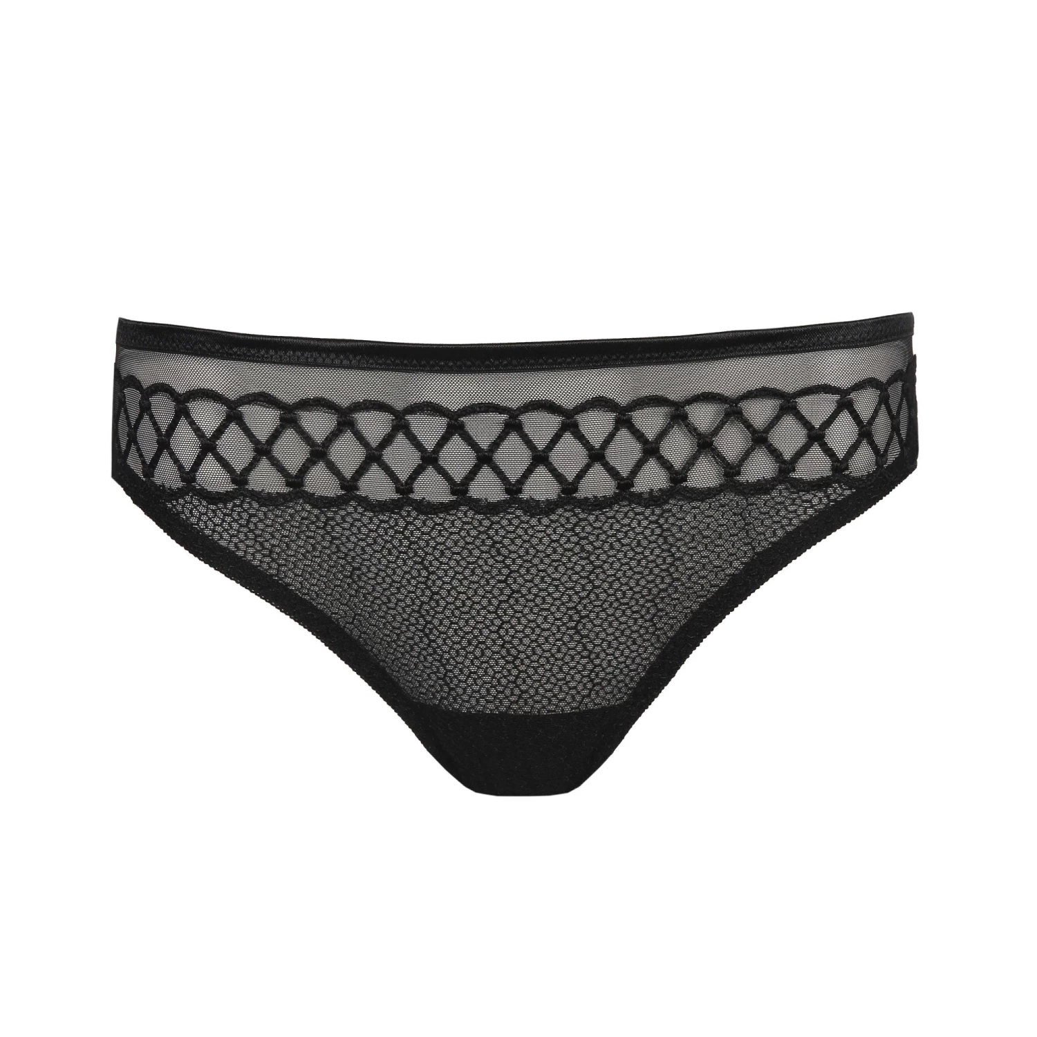 Reizvoller Rioslip aus halbtransparentem Netzmaterial und Stickerei am Po. Eine Zierschnalle auf dem Rücken rundet den Look ab. Stilvoll und ausgesprochen betörend: Schwarz vereint diese Eigenschaften!