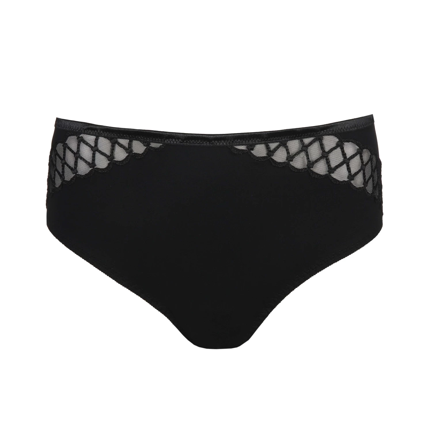 Verführerischer Taillenslip aus halbtransparentem Netzmaterial mit Stickerei am Po. Freches Detail: die Schnürung auf der Rückseite. Stilvoll und ausgesprochen betörend: Schwarz vereint diese Eigenschaften!