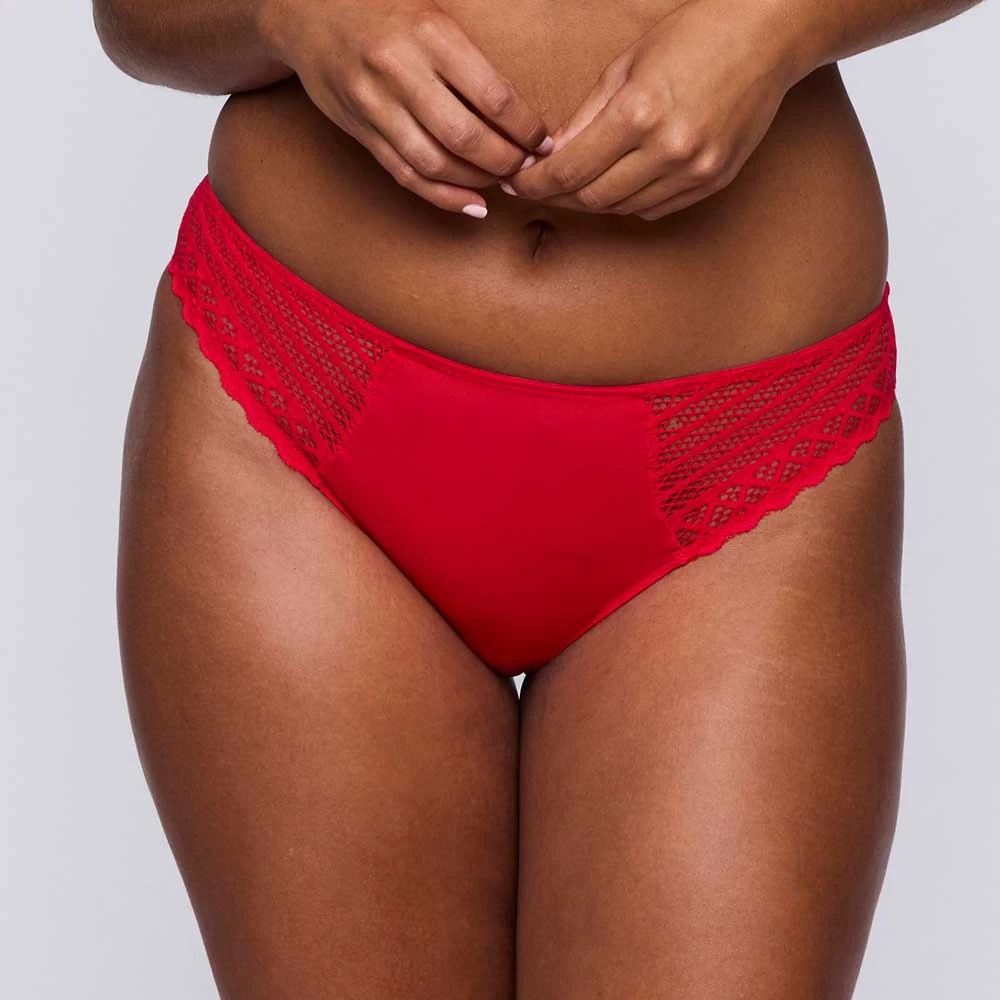 Schicker Rioslip aus einem einfarbigen, blickdichten Stoff, mit geometrischer Spitze versehen. Zu 46% aus recycelten Garnen hergestellt. Charbon ist ebenso zeitlos wie schwarz, bildet aber einen etwas sanfteren Kontrast zu Ihrem Teint.