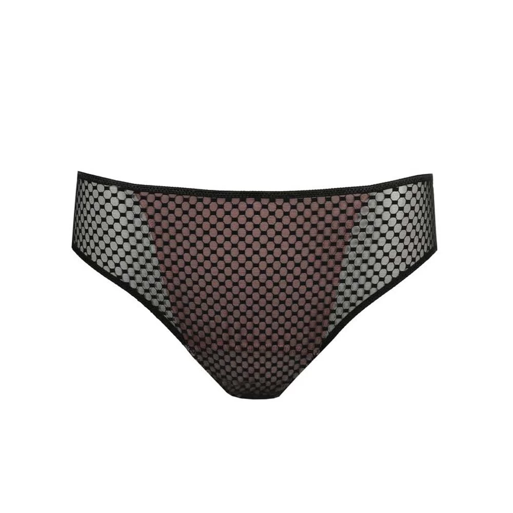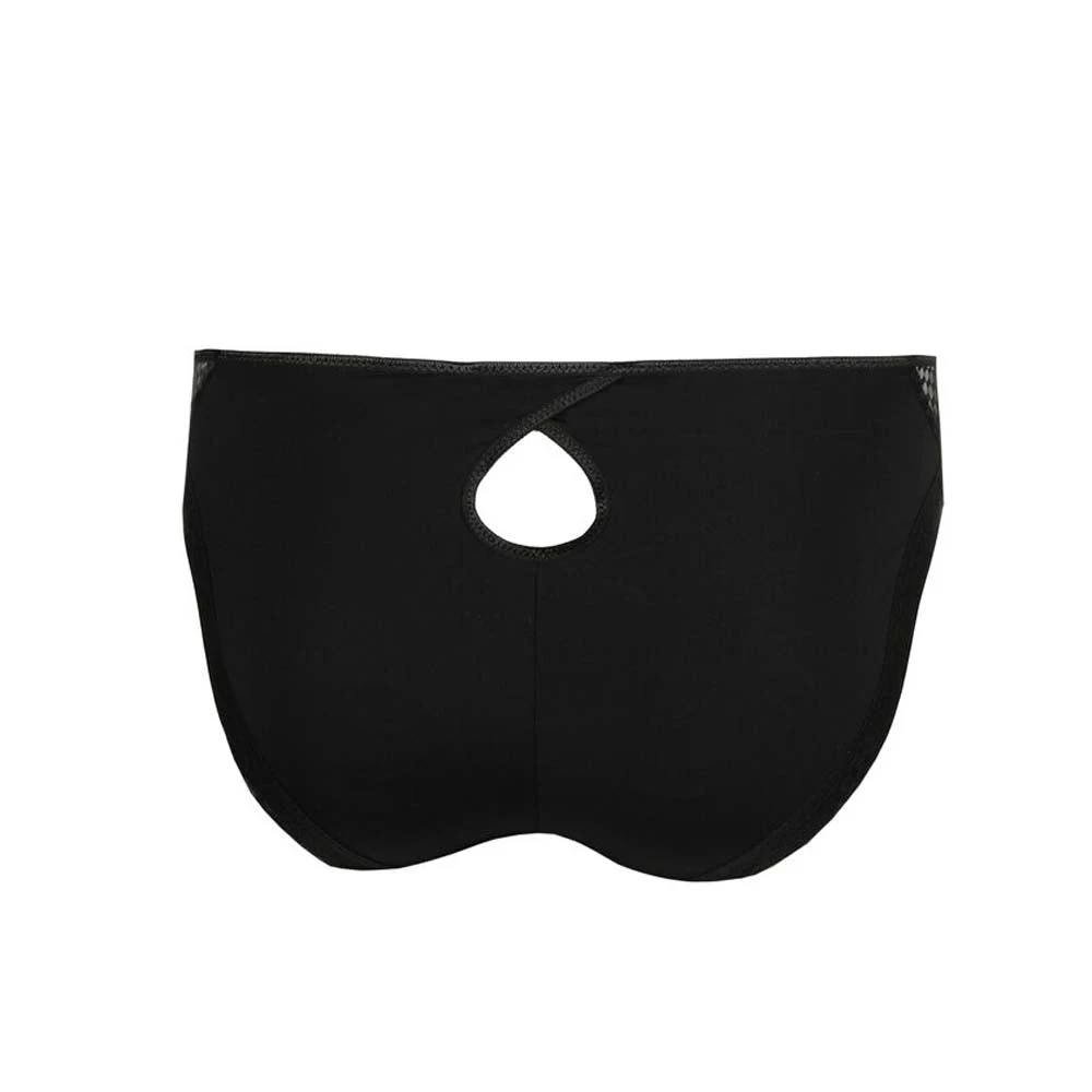 Rioslip aus sexy gepunktetem Tüll, mit weicher Mikrofaser im Rückenbereich. Ein stilvoller Ausschnitt auf der Rückseite vervollständigt Ihren Look. Schwarz verleiht Ihnen einen sexy, minimalistischen Look. Perfekt für den Ausgehabend!