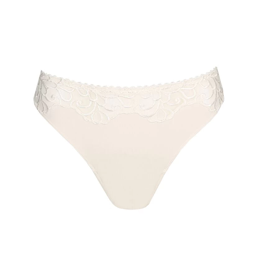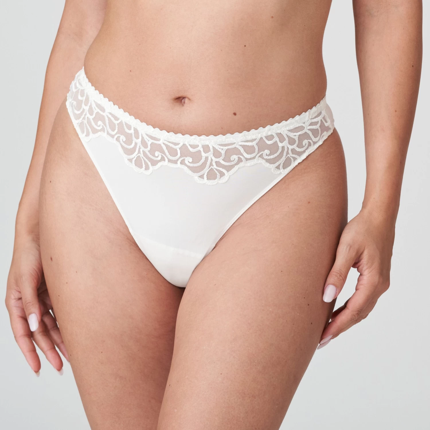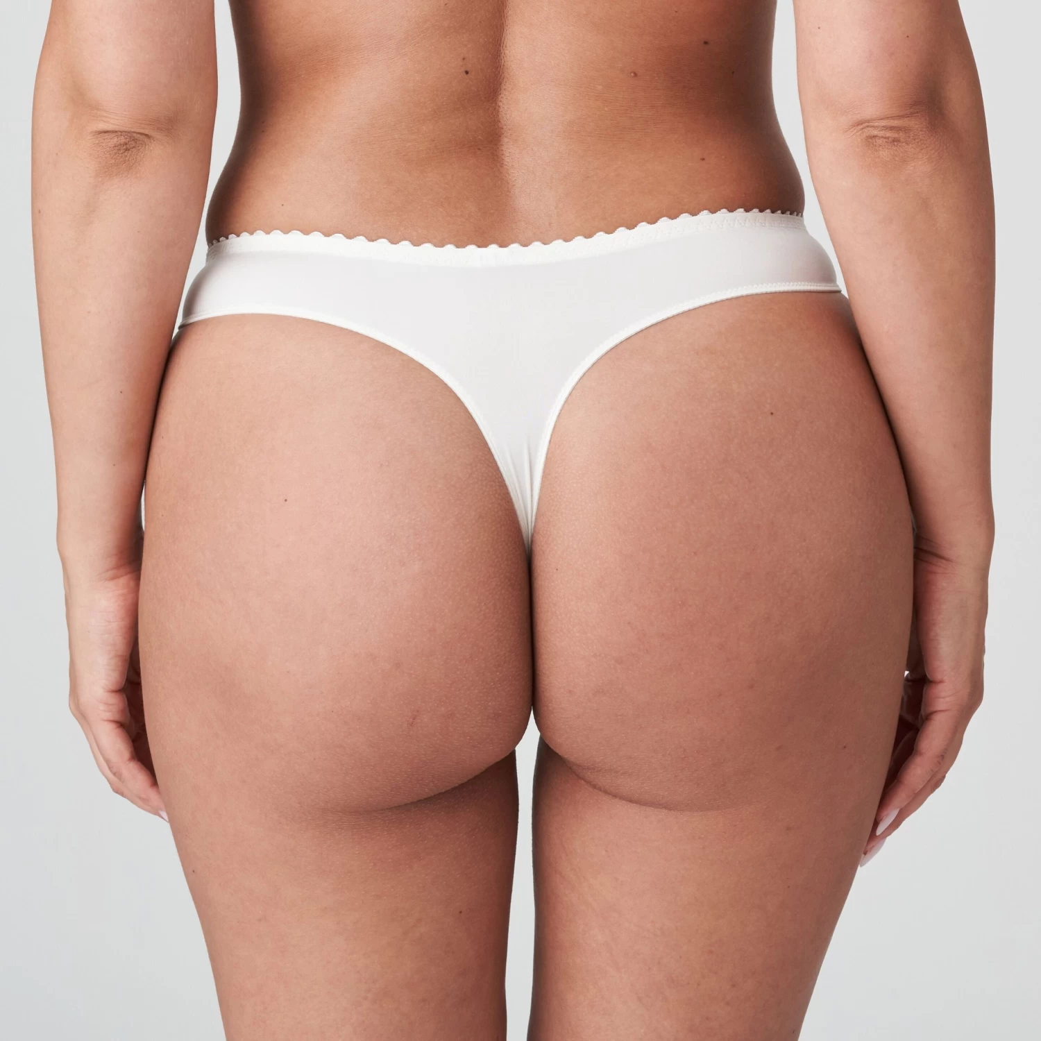 String aus einem weichen gemusterten Stoff mit feiner Stickerei an den Beinen. Der feminine Naturton bildet einen sanften Kontrast zu Ihrer Haut und passt unter all Ihre hellen Sommeroutfits. Pure Eleganz!