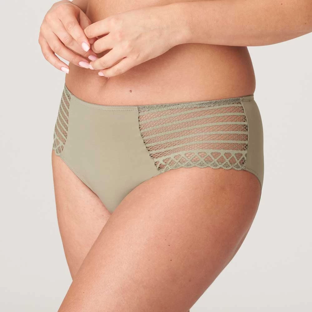 Minimalistischer Taillenslip aus glattem Stoff mit modischer geometrischer Spitze am Beinausschnitt. Botanique ist ein neutraler Kakiton, den Sie das ganze Jahr hindurch problemlos mit all Ihren Outfits kombinieren.