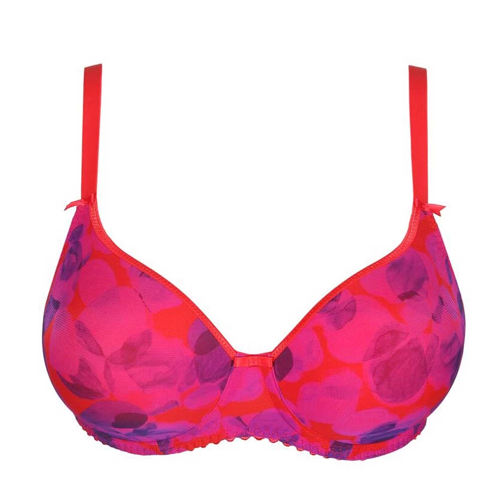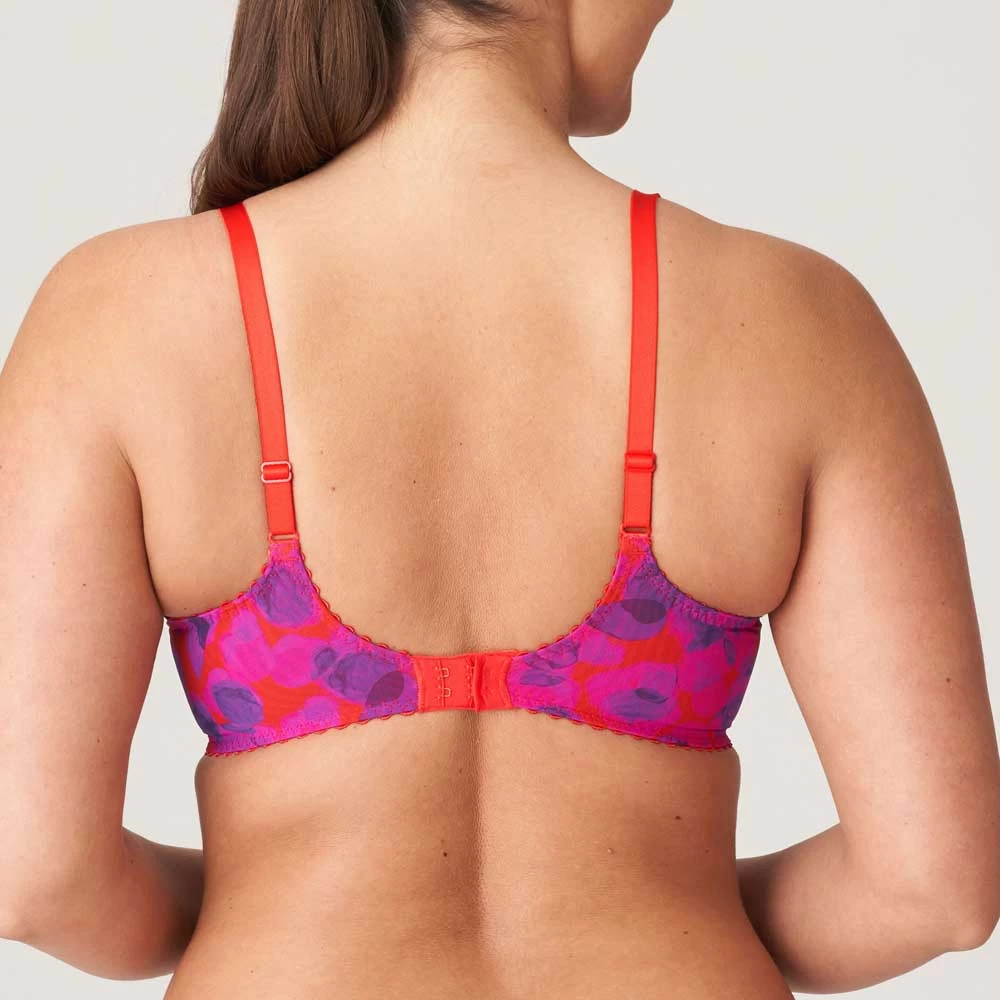 Topmodischer herzförmiger BH aus elastischem Tüll mit abstraktem Muster in knalligen Farben. Die Cups haben eine herzförmige Linienführung für einen eleganten Retro-Look. Pomme d’Amour bietet einen Farbmix aus kräftigem Rot, Fuchsia und Blau mit dem Charme eines abstrakten Gemäldes.